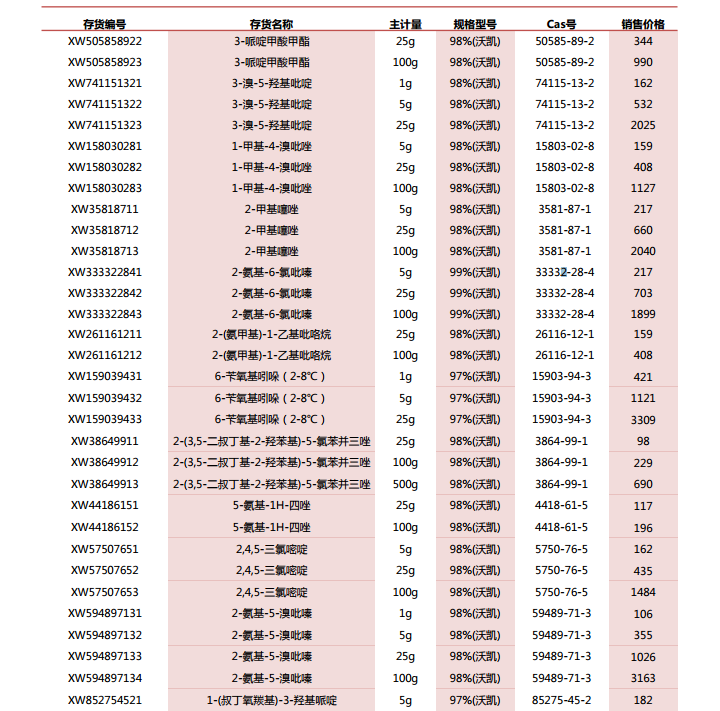 满足市场需求,填补化学试剂市场上的空白,品乐道试剂不断突破自我,诞生产品线,不断为广大实验室用户带来了新的产品和服务,力求满足各类实验室用户的要求。 本次为大家带来的是杂环类化合物,产品结构中包括吡唑、哌啶、噻唑、吡嗪、吡咯等特殊结构,希望为大家的药物合成研究添砖加瓦。 品乐道试剂还将不断推出不同领域的新产品。